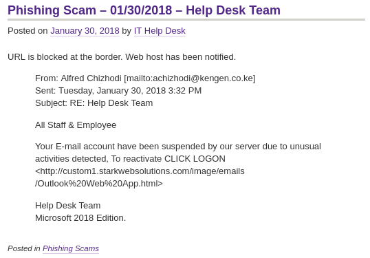 The message talk about a ‘webmail database’ and en join the user to validate her/his e-mail if she/he don’t want to be deleted from a ‘database’. As you can see, the form Domain/Username looks like a Microsoft/AD field.
