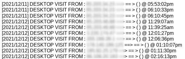 We can observe that all connections to the phishing site are also logged into a HTML file (visit.html) with a little bit of enrichment as the IP address of the visitor device and its geographic location: