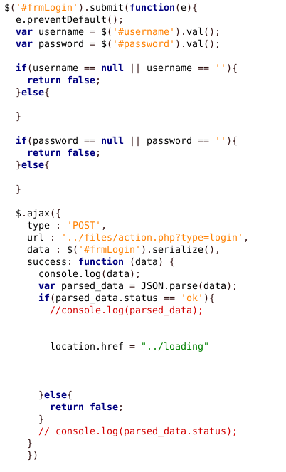 Once the login data is entered, the page makes an AJAX call to the files/action.php page and assigns a unique identifier to the victim’s browser session ($uniqueid)…